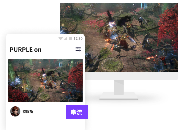 透過PURPLE on功能,能夠將執行於PC裡的遊戲,可以從Mobile PURPLE中以遠端遊玩