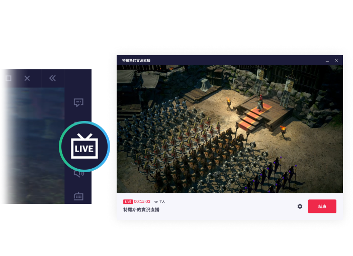 透過PURPLE live不需安裝額外的直播軟體,就可以將方便地把遊戲內畫面分享給血盟員、好友們